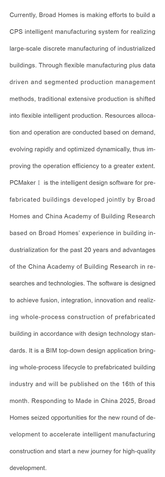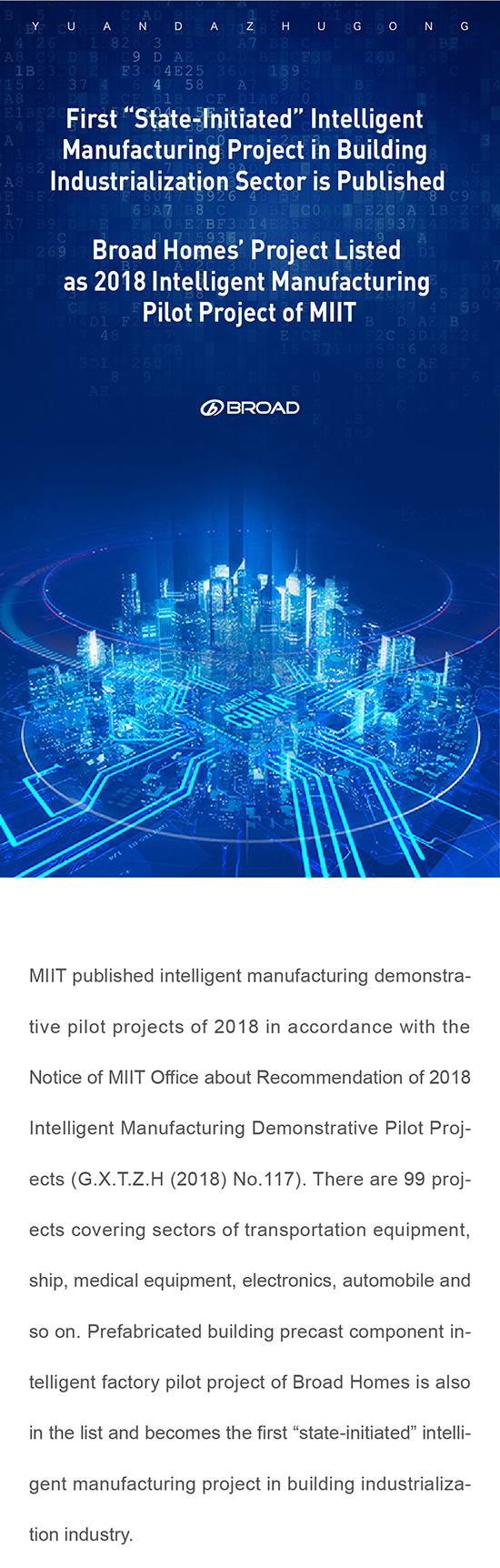 First “State-Initiated” Intelligent Manufacturing Project in Building Industrialization Sector is Published Broad Homes’ Project Listed as 2018 Intelligent Manufacturing Pilot Project of MIIT