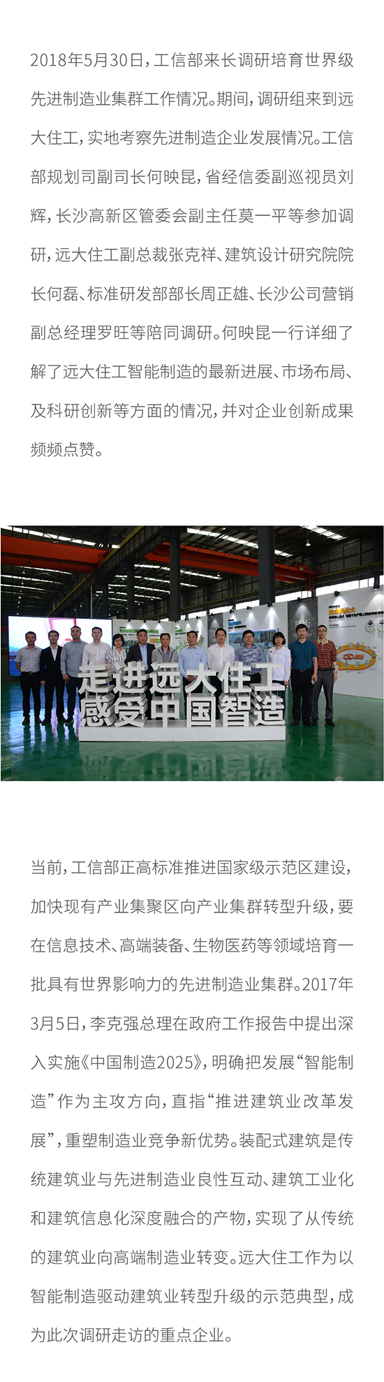 工信部調研遠大住工 智能化建設獲高度肯定