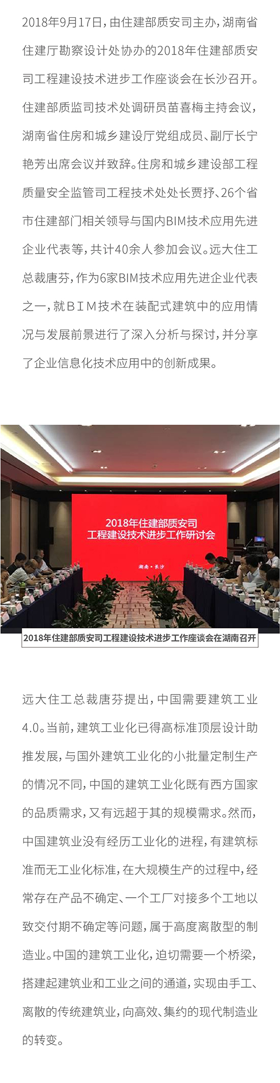 2018年住建部質安司工程建設技術進步工作座談會在湖南召開 遠大住工BIM技術應用創新成果獲肯定