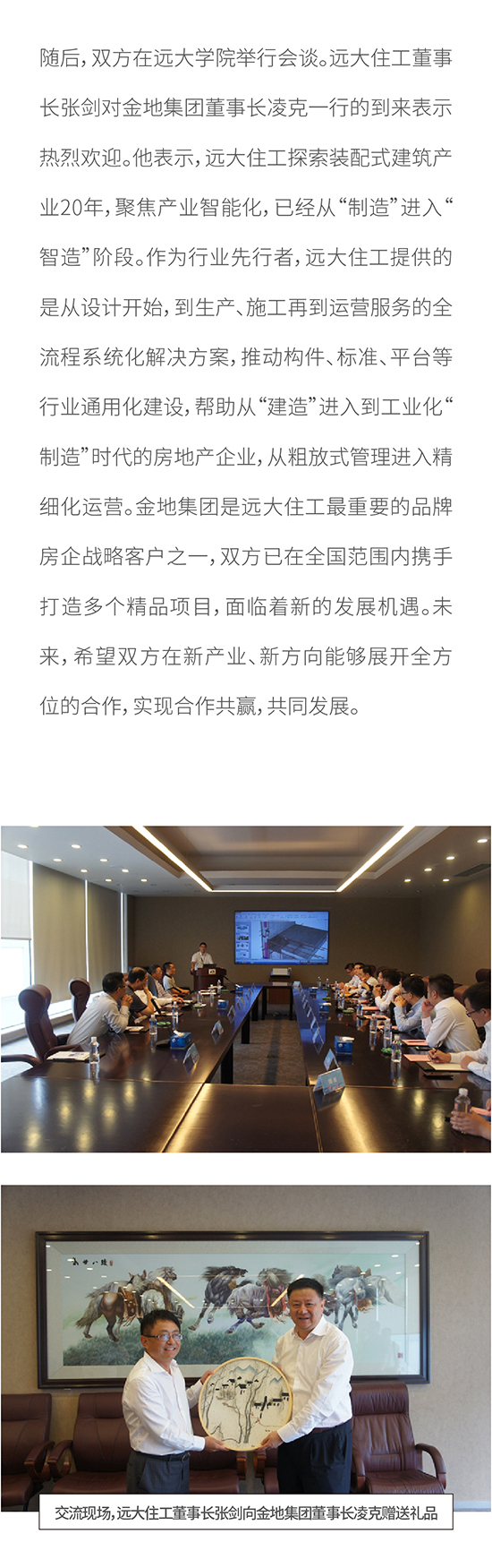 加強交流合作 促進建筑產業科技創新 金地集團董事長凌克一行赴遠大住工參觀考察