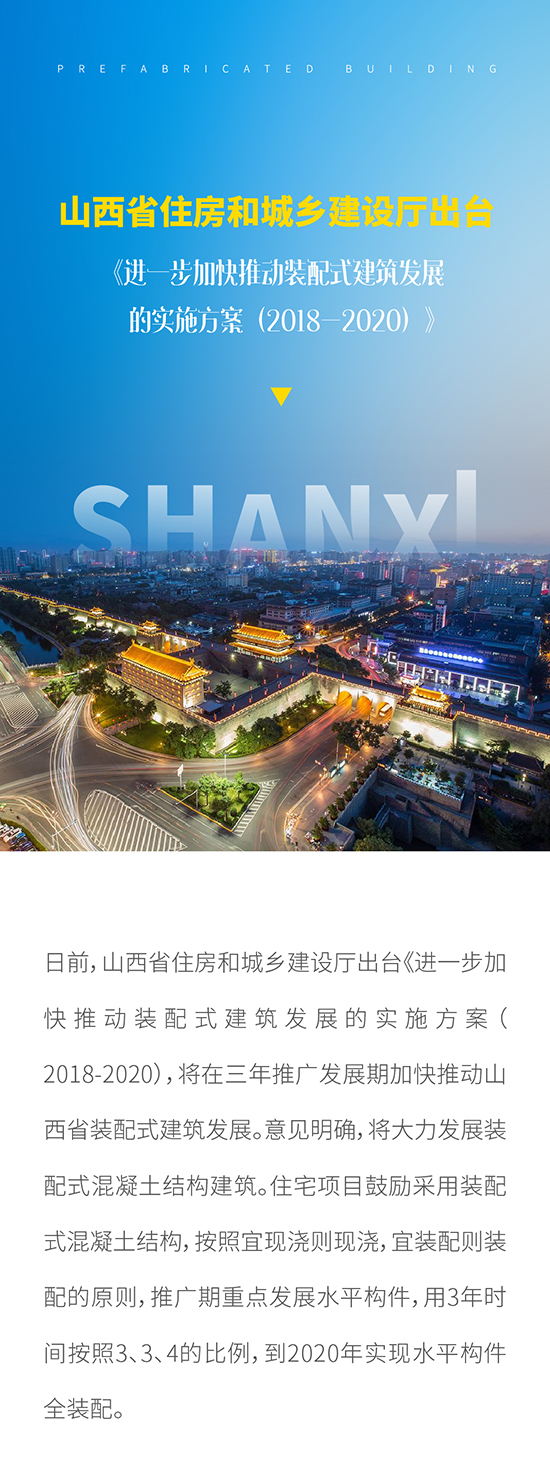 山西省住房和城鄉建設廳出臺 《進一步加快推動裝配式建筑發展的實施方案(2018-2020)》