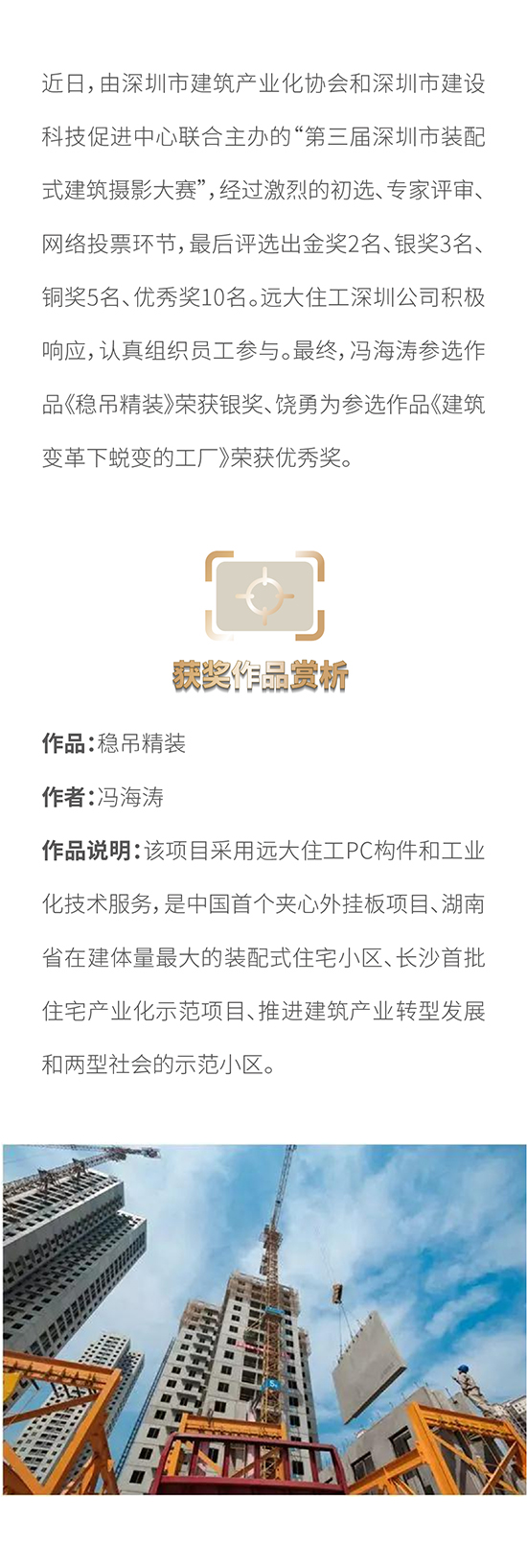 2018年第三屆深圳市裝配式建筑攝影比賽評選結果揭曉 遠大住工深圳公司喜獲佳績