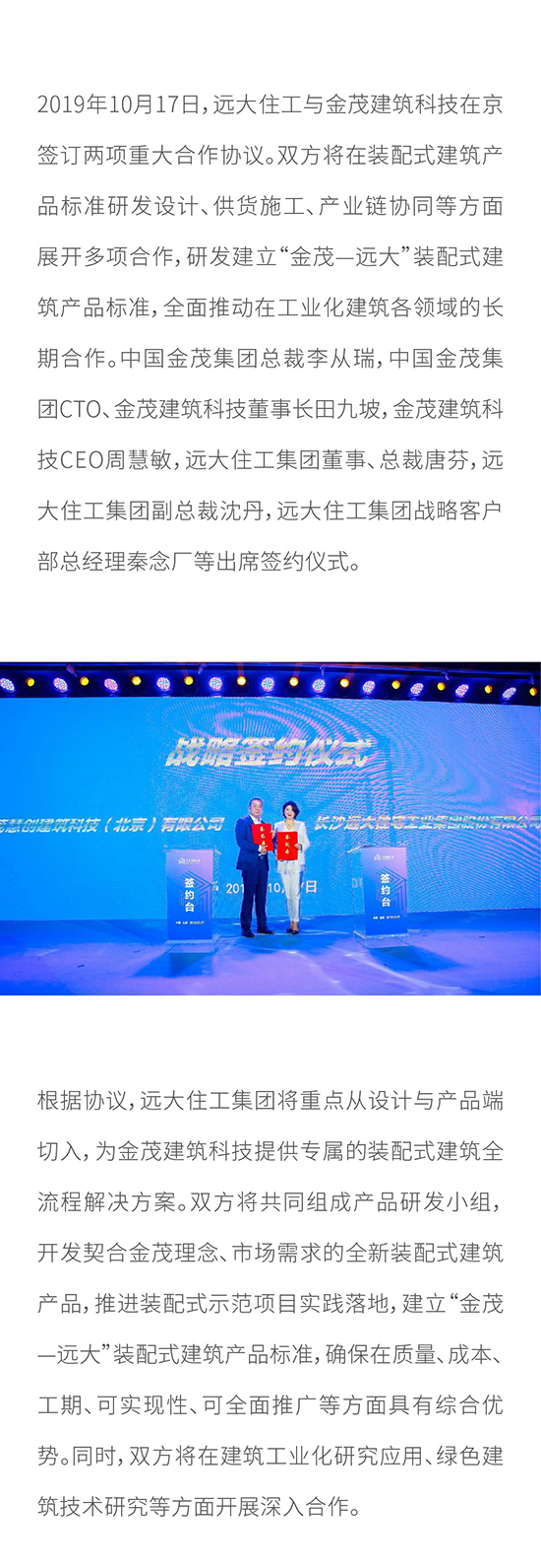 遠大住工與金茂建筑科技簽訂兩項重大合作協議 研發建立“金茂—遠大”裝配式建筑產品標準 全面展開產業合作