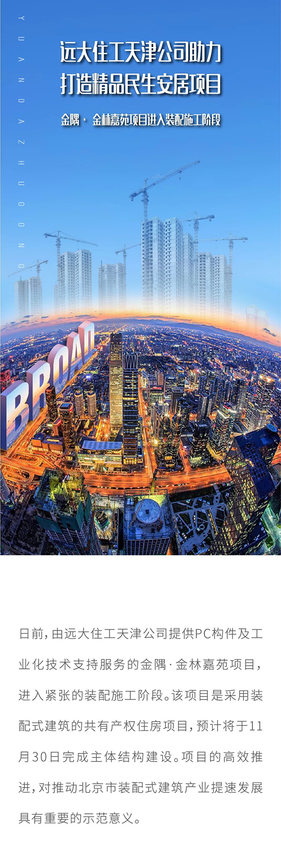 遠大住工天津公司助力打造精品民生安居項目 金隅·金林嘉苑項目進入裝配施工階段